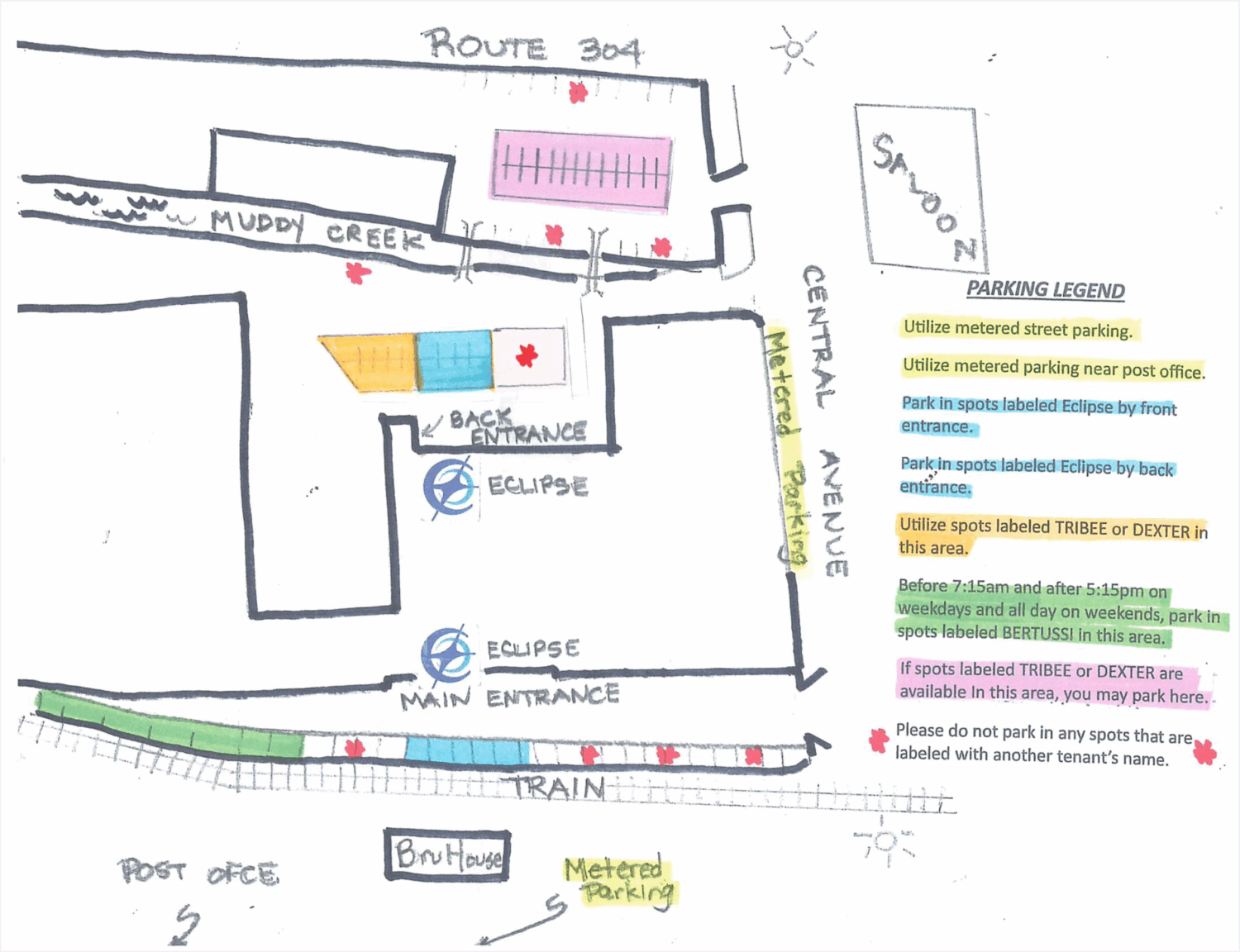 Please do not park in any spots that are labeled with another tenant’s name.